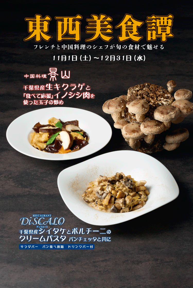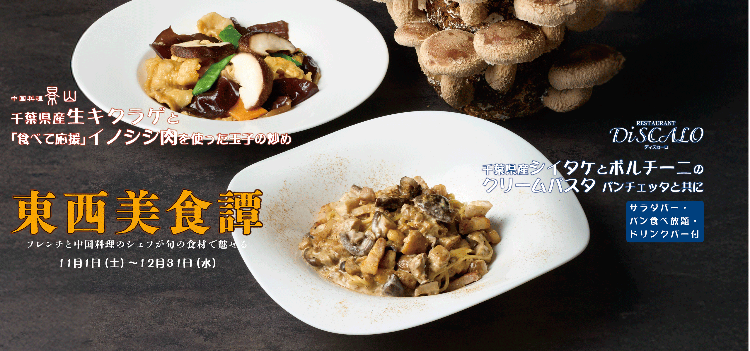 非日常の空間で気軽に寛げるカフェレストラン「ミレフォリア」、千葉県産の食材を活かし四季折々のお料理が楽しめるレストラン「ディスカーロ」、京成飯店から続く伝統の味を守りつつ新しい風を感じる中国料理「景山」。ホテルシェフが自慢の腕を振るう上質で洗練されたお料理に心躍る楽しいひとときをお過ごしください。