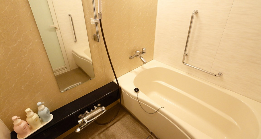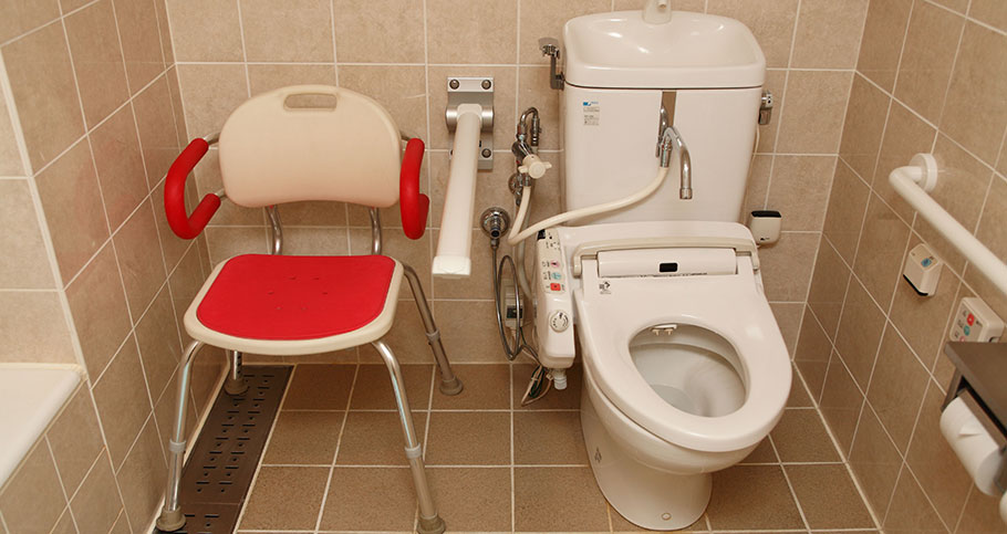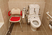 - It is a room with enough space that you can move with wheelchair. Not only the room but also the bathroom have enough space and can bathe without getting off wheelchair.