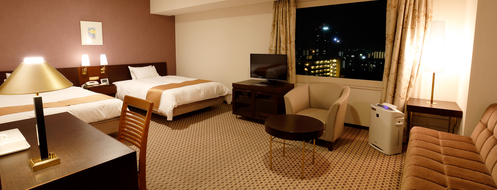 - The largest twin type room with 42 square meters. Of course, bath and toilet are separated. Also three of you can share in one room by using extra bed.