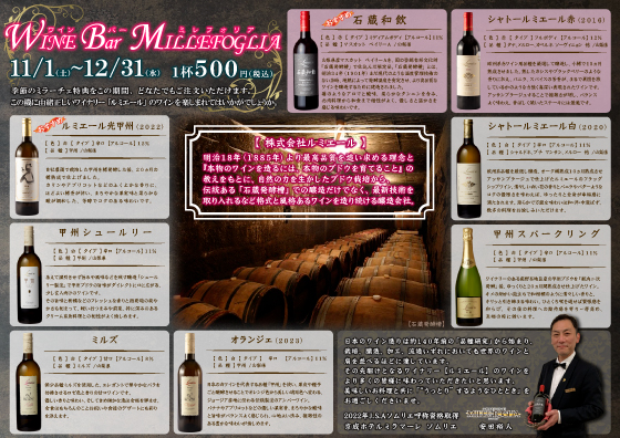 この機に由緒正しいワイナリー「ルミエール」のワインを楽しまれてはいかがでしょうか。