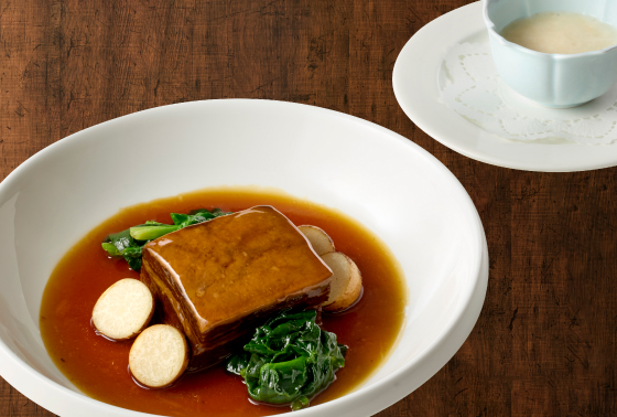 「ひとつの食材、ふたつの世界」- その時期ならではの旬の食材をテーマに、中国料理とフランス料理、ふたつの異なる世界観が楽しめる。3・4月は青森。 ・青森県産アップルポークの東坡肉 アピオスとちからいもの饗宴 2,7...